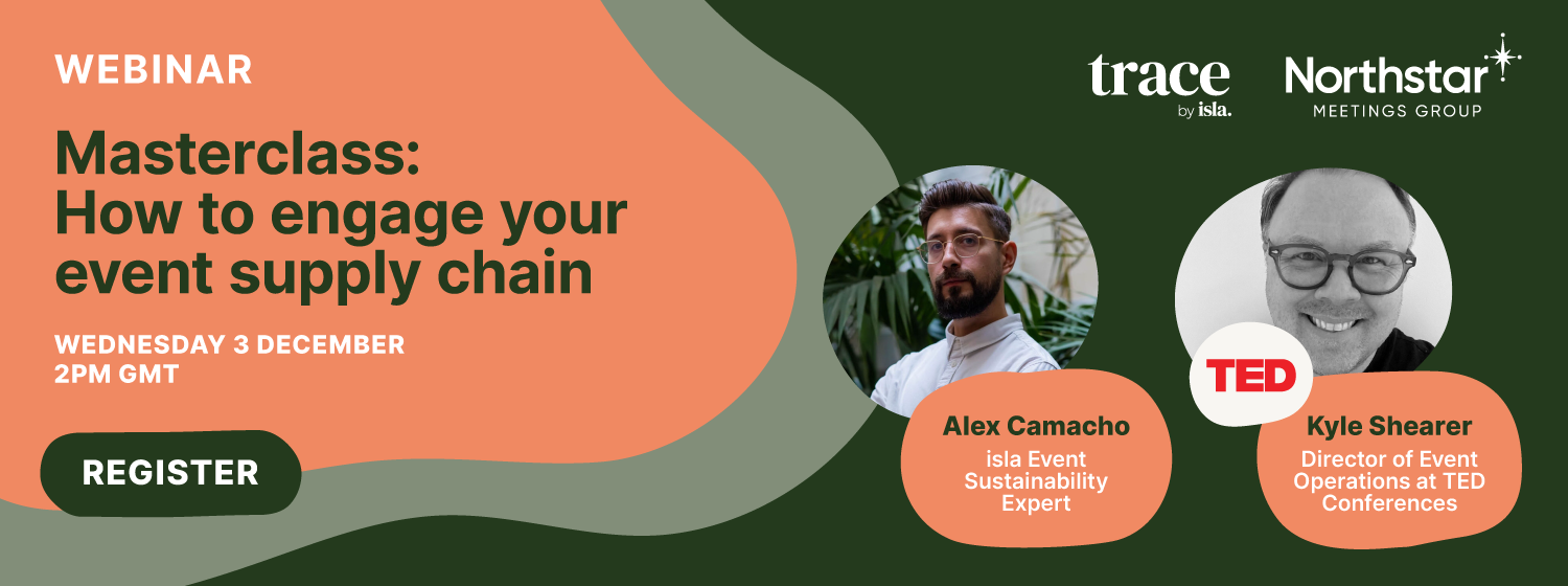 Here’s a startling fact: almost 98% of an event’s carbon emissions come from the supply chain: catering, production, logistics, materials… all the elements you rely on but don’t always control.